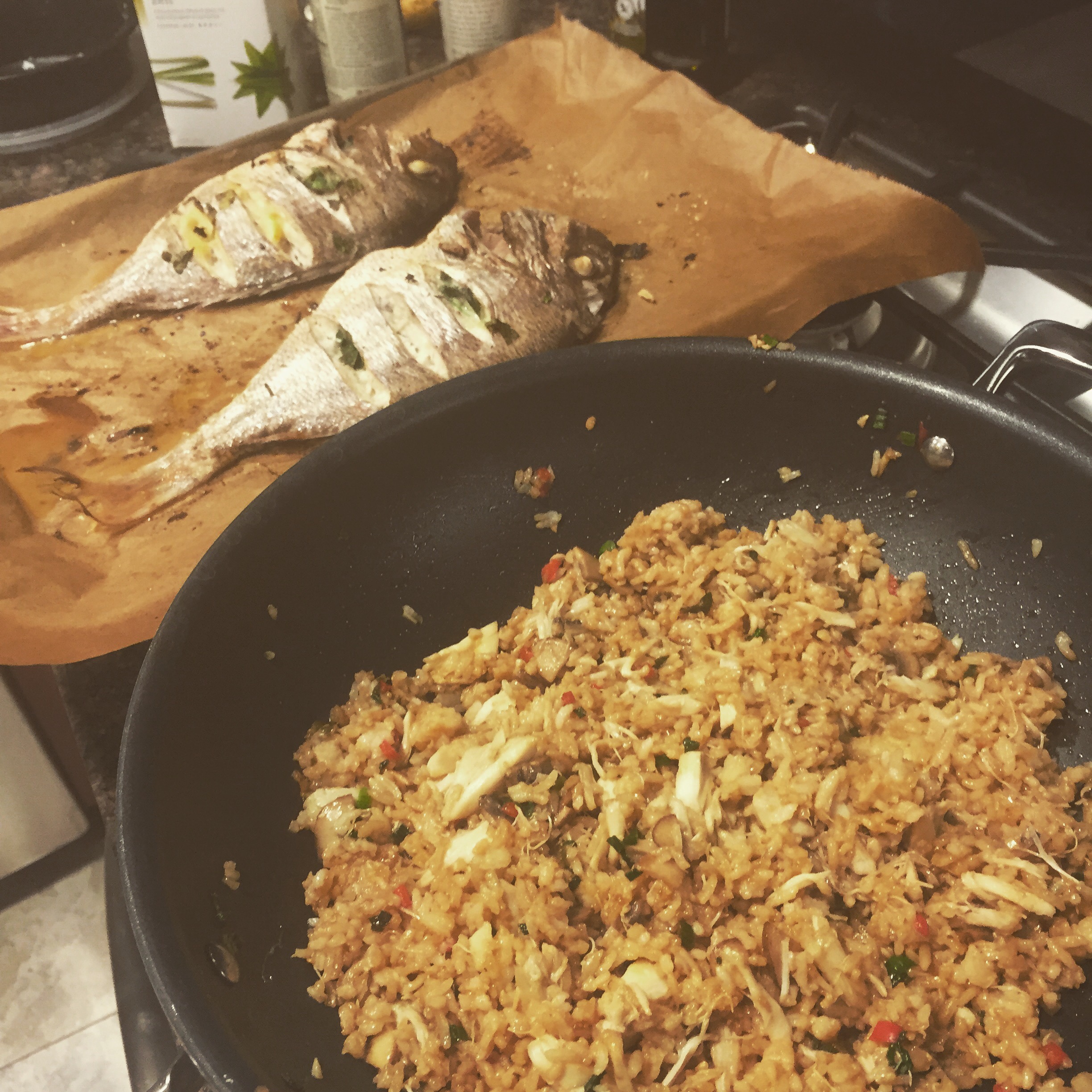 Scott & I go out to eat every so often to give us a break in the kitchen and more importantly to find inspiration for date night dinners at home. One of our favorite places to go in Tampa, Florida is a restaurant called Eddie V’s. One of their side items that we are absolutely addicted to is their crab fried rice. This is one of their menu items that speak to your soul and even better, the leftovers seem to have the healing powers to cure a hangover after that bottle of wine we killed at dinner.