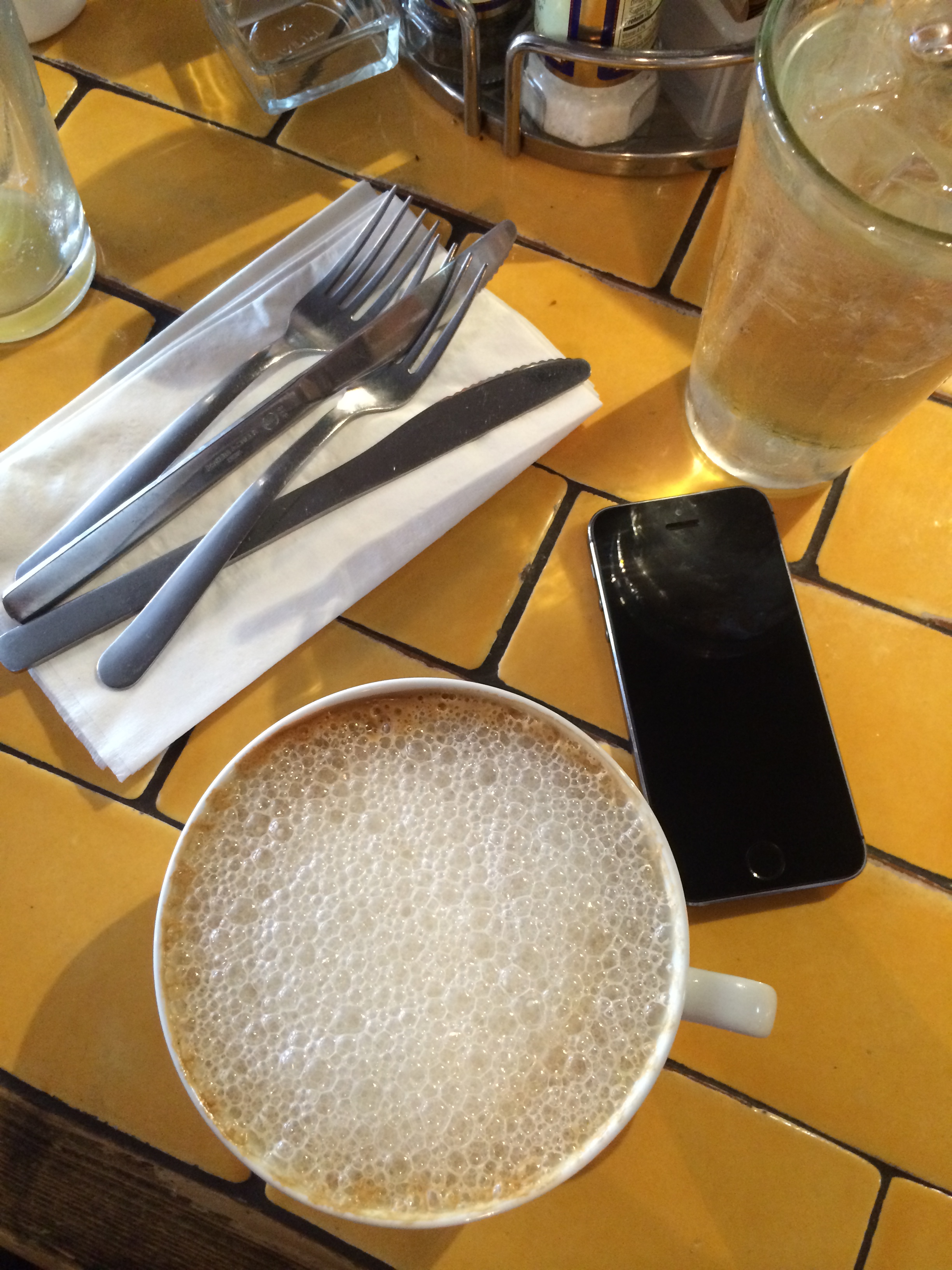 country (that is not Denise from Minnesota sipping coffee, that is my sister Sue). I can best describe the food as elevated diner food that is comforting and rustic. The decor is eclectic and vintage and there is no such thing as a hostess, you just walk in sign your name on the sign in sheet on the podium and they call you when a table becomes available. It is a quaint spot