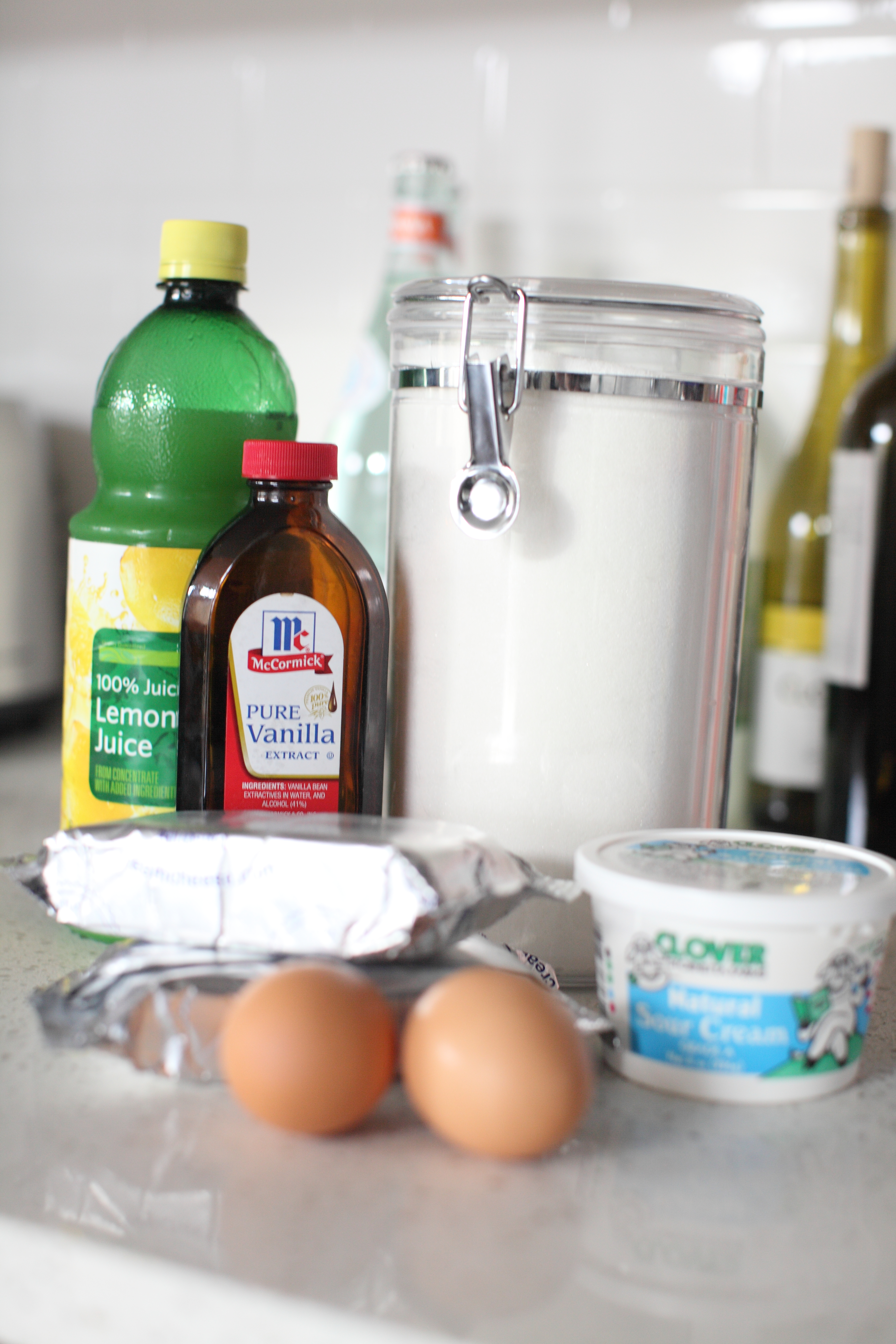 While this is baking, prepare the sour cream topping by whipping the sour cream, vanilla, and sugar in a small bowl and set aside.