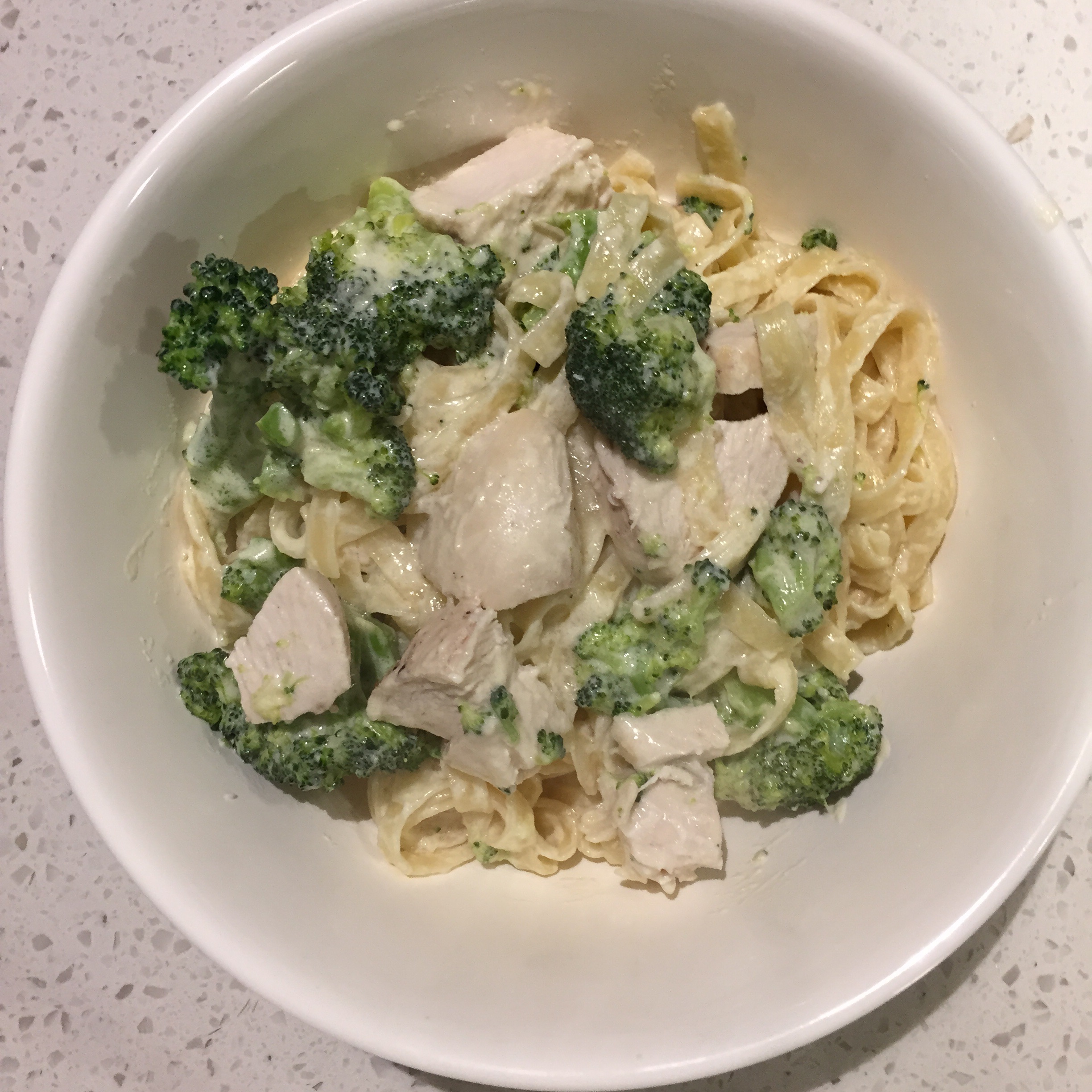 Scott’s pre-game meals always consists of carb loading. The night before Scott pitches I always make him some form of pasta with a protein. This is one of the most requested pasta dinners when I actually give him a choice. It started out with just alfredo and slowly graduated to chicken alfredo, which then graduated to chicken alfredo with broccoli. The baked/steamed chicken is actually a healthy twist on what usually can turn into a heavy meal. I did this crazy diet and learned this technique as a healthy alternative to eating grilled chicken, or poached chicken all the time.