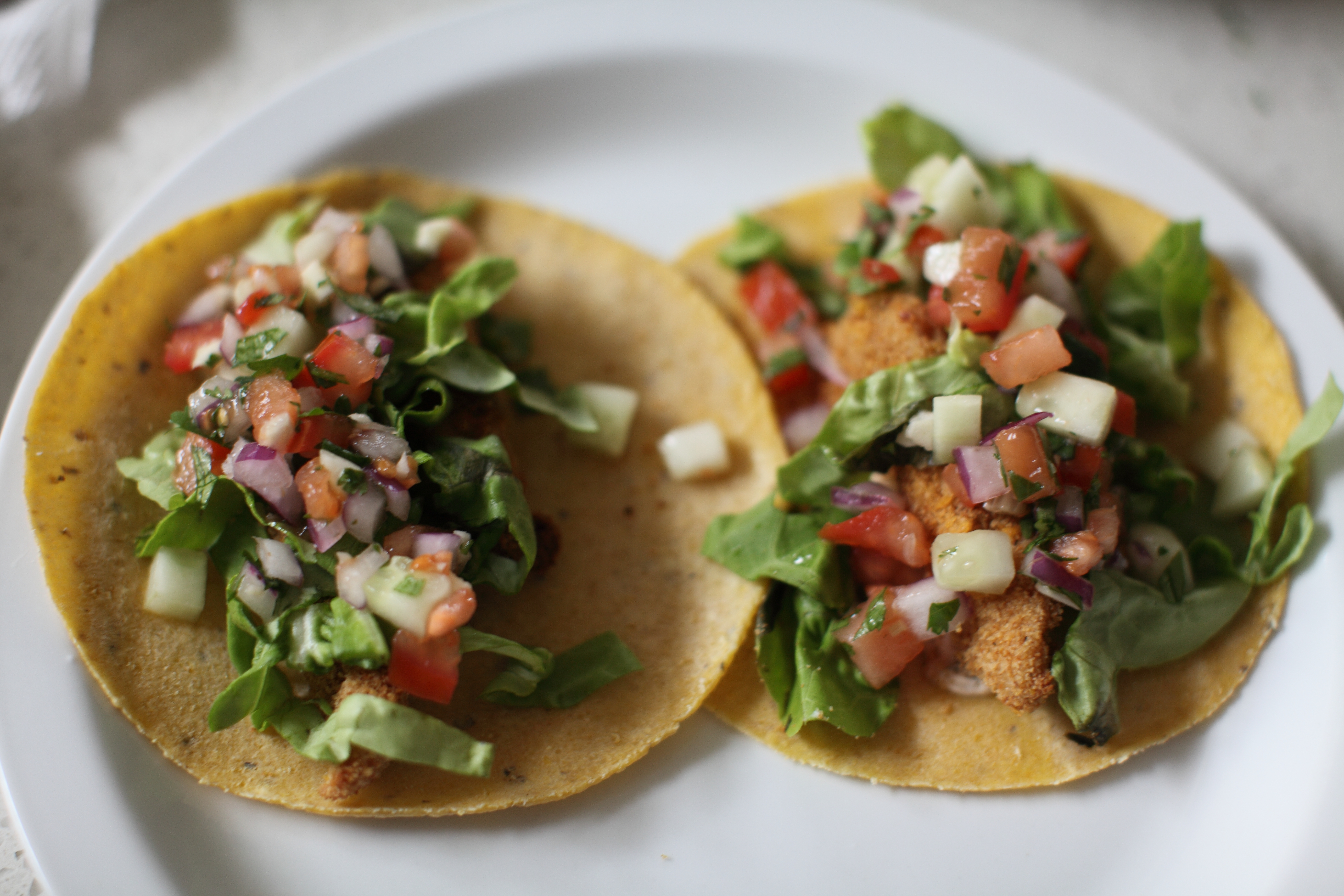 Today we are going to be making chicken nuggets for the little ones and chicken tacos with a refreshing cucumber pico de gallo for the adults in the family. This eliminates having to make two meals to appeal to everyone. Let’s use what we have and keep running with it! We are going to serve this along side a watermelon salad to keep it light and fresh for these hot summer months!