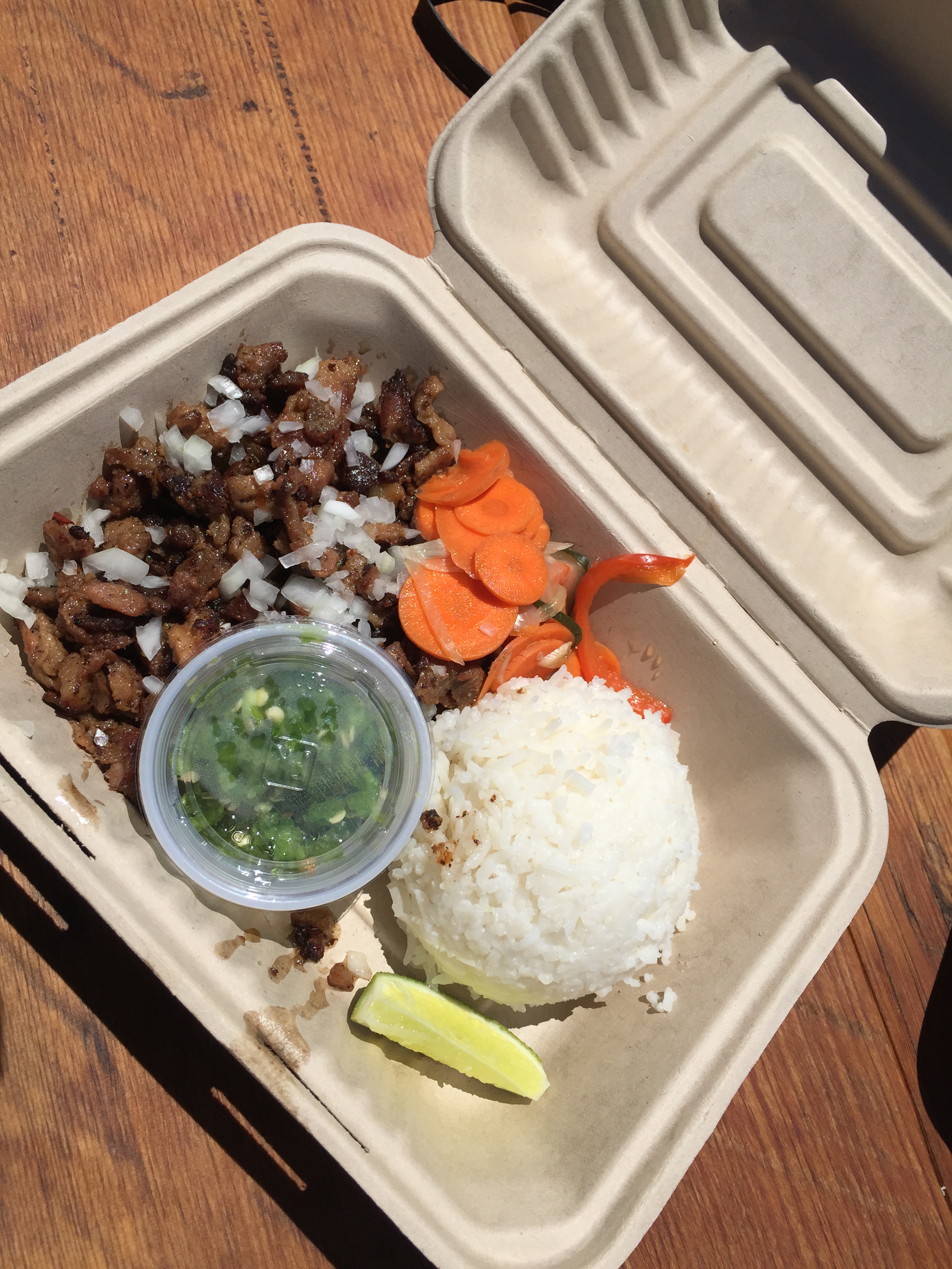 When my sister and mom came to visit last week I took them there to kill two birds with one stone; site see and lunch. Of course my mom immediately introduced herself to the guys in the food truck in tagalog. They did warn her that the sesig she was about to eat wasn’t going to be the traditional filipino sesig since it did have a mexican flair. We all ordered the same thing; pork sesig with rice. Yeah we all live on the edge, I know. We also shared the sesig fries that are covered with cheese, guacamole, pork sesig and diced jalapeños. Last year Sue and I had the sesig burrito with adobo rice that is uh-may-zing too! We of course ate everything like we had just gotten out of jail! They have a few other menu items like tacos, nachos, and a salad.Definitely recommend this place!